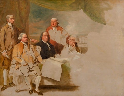 The French skillfully used this inside information to steer negotiations toward their own interests, even where those diverged from America’s. Franklin had been in Paris since December 1776. His wit and sociability made him a darling of French society, and he was on intimate terms with the French negotiators. As Jay and Adams saw it, Franklin’s social entanglements were making action on behalf of America difficult. Despite his protestations, Franklin had real conflicts of interest.