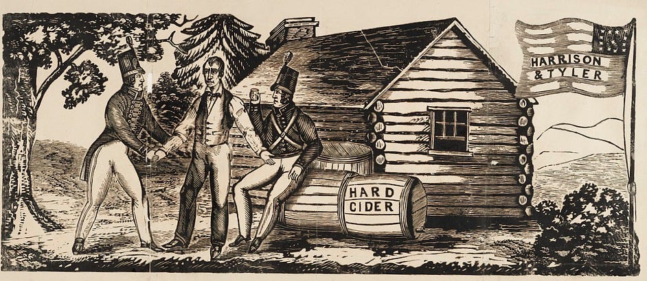 Four years earlier, Americans had watched the economy seize up. The Panic of 1837 triggered bank failures, collapsing credit, business closures, and deep insecurity. Martin Van Buren had inherited much of that crisis, and the Whig Party –– of which Harrison was a part –– treated the economic pain as a moral indictment of Van Buren, mocking him as “Van Ruin.” They offered Harrison as a kind of national reset — an old soldier with a simple image –– maple syrup and a catchy slogan –– and a promised return to balance.
